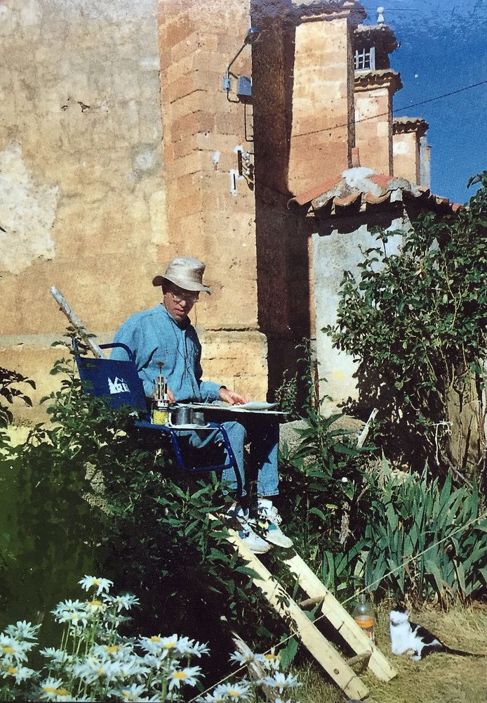 Watercolor #1, Spain 1994: The Blue Pocketknife, signed twice in frustration and misdated on Day #1 with D. Fco. Alcaraz