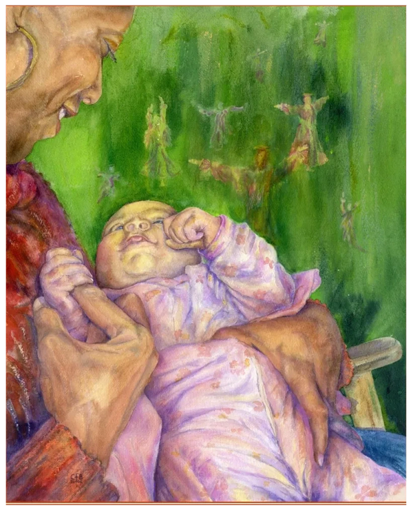 Perfectly Loved. The last of the 38 paintings made under D. Fco. Alcaraz in the gold-leafed frame carved by Alcaraz in Spain 1994. Alcaraz loved it.