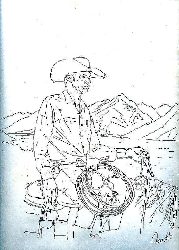 Atelier 2010 demo: Following the Cloud. A real cowboy working cattle on his Oklahoma Quarter horse. Winsor & Newton British watercolors.