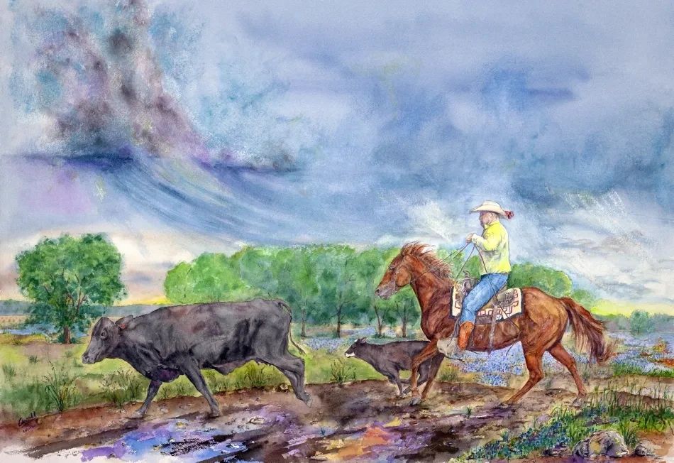(The painting features Cattleya orchids at Jardim Botânico in south Rio de Janeiro, Brazil.